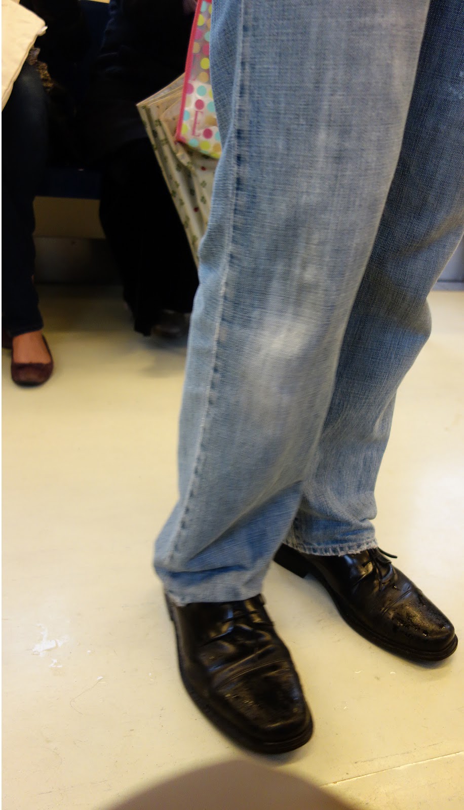 這位只拍下半身的外國人,應該是在石牌站上車的。我之所以不確定,因為今早一上捷運,有著好運氣,右前方竟然有個空位,坐定後,便閉起眼睛補眠了。當我再睜開眼,望見他已在站在我的面前。