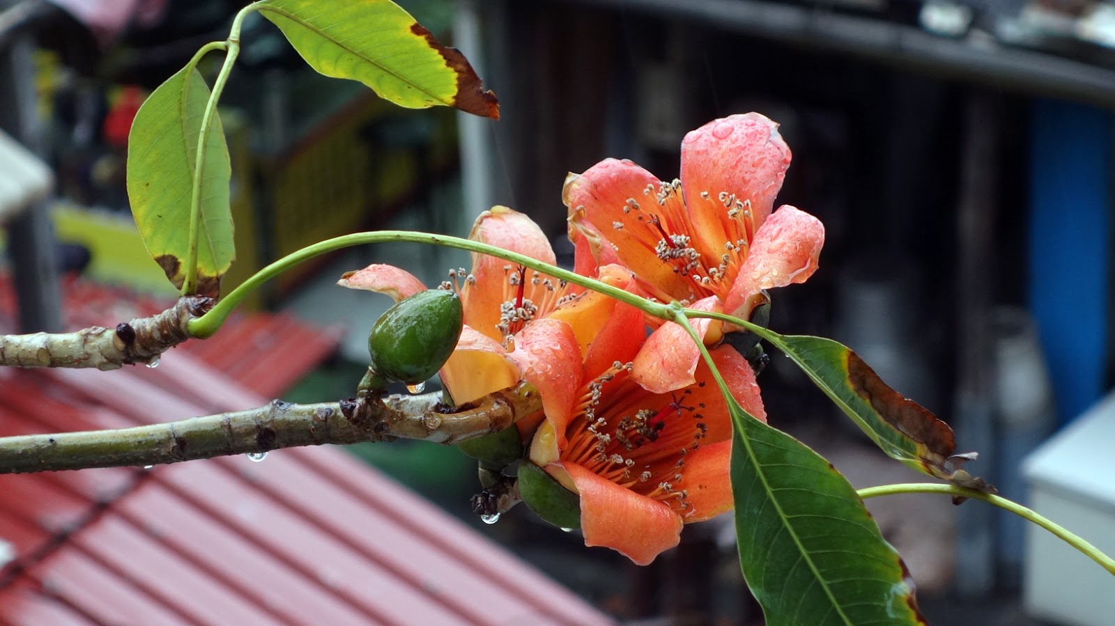 緊鄰站體復興南路上的橘紅木棉,卻將春給燒了,開得更加放肆。