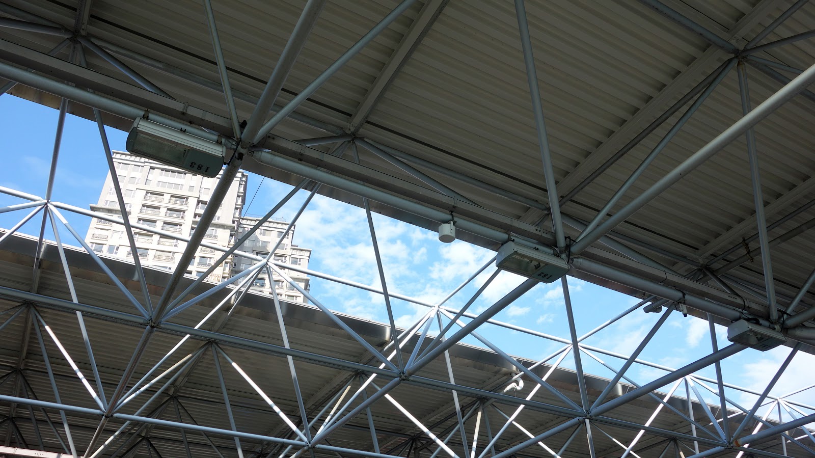我站在窗邊,抬頭,望著我很喜歡的站體天花板的鋼條設計,