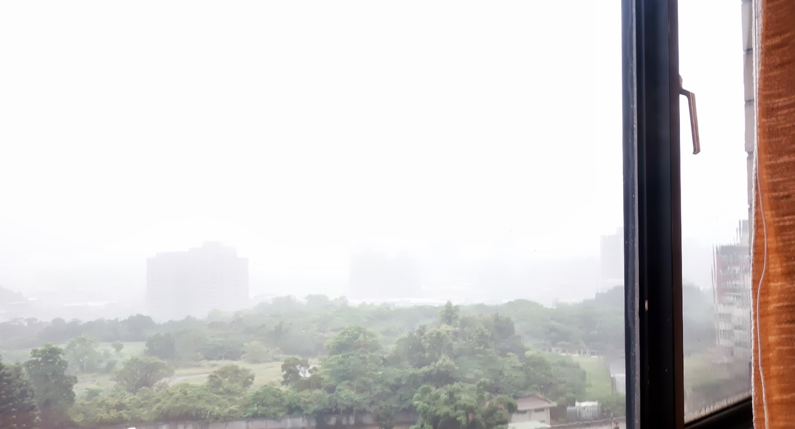 聽著雨打在大窗和冷氣機盒子上,