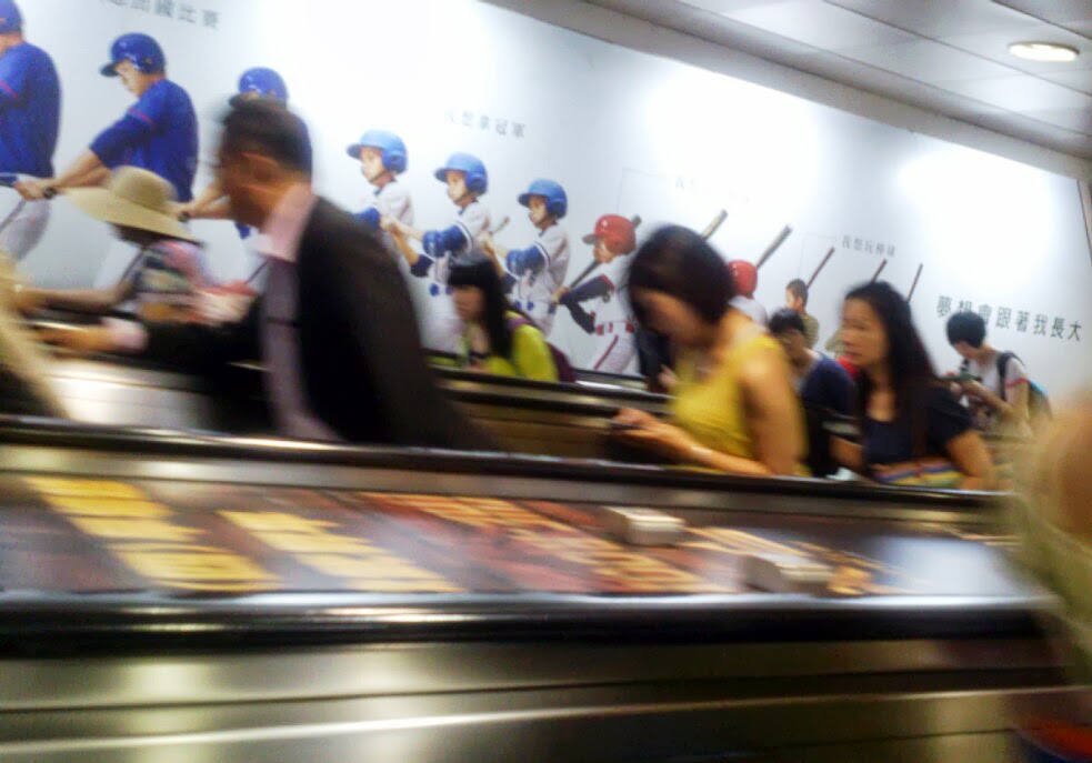 我應該只有兩、三回步移到手扶梯左側,用走的。
