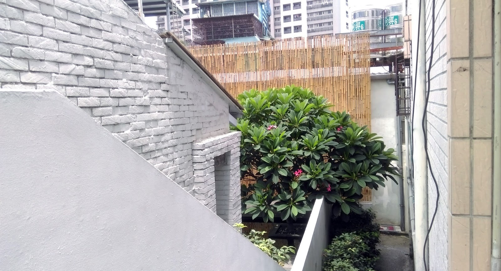 小心翼翼走著,從眼前這常有流浪小黑貓秒動身影、更是通往捷運站捷徑的窄梯望去,